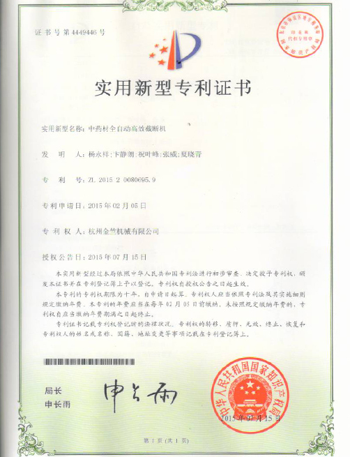 实用新型专利证书