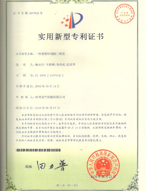 实用新型专利证书